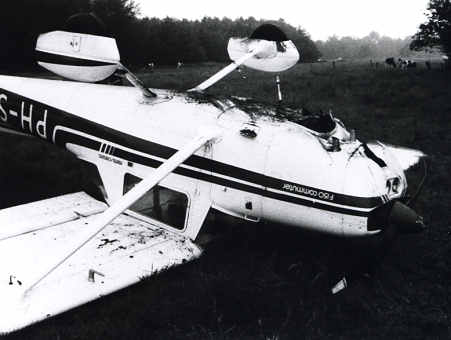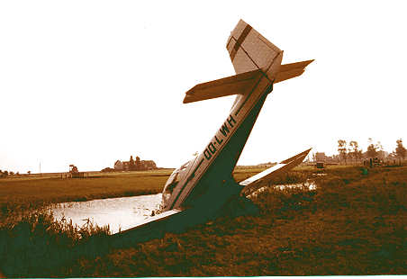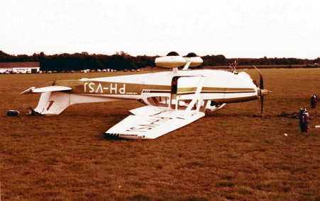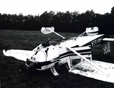 propeller tegen de grond sloeg en beschadigd werd.