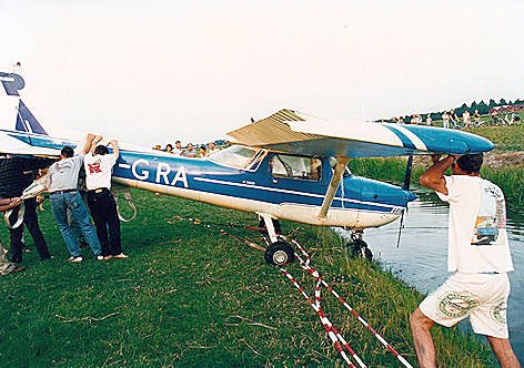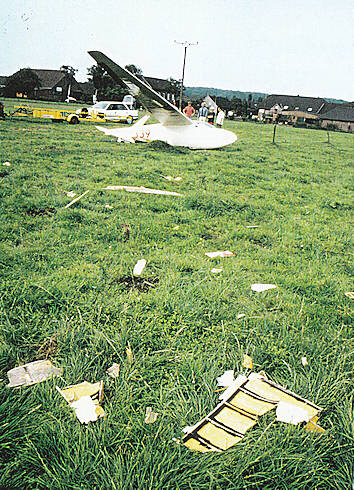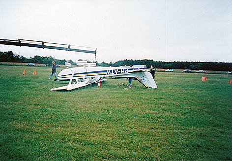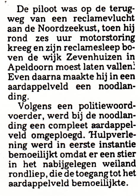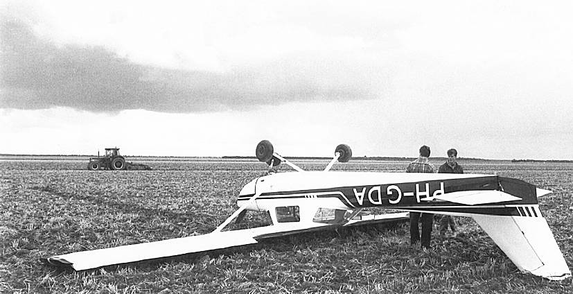 ongeveer 30 meter vóór de eveneens in het circuit vliegende PH-TRT terecht. De laatste moest een heftige