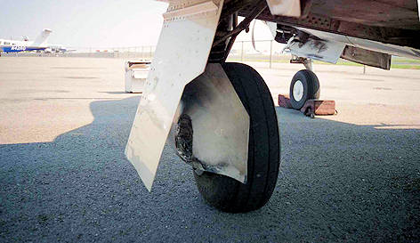 besloot door te vliegen naar Keulen. Bij de landing daar kwam wiel #4 los van de wielpoot zonder dat