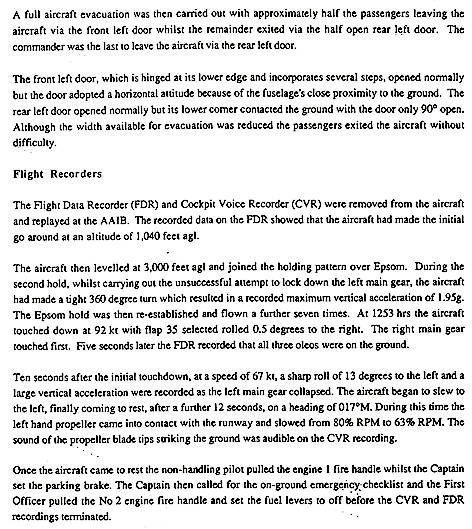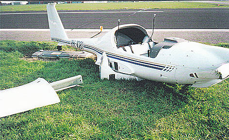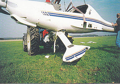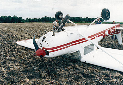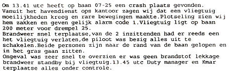 Hierdoor ontstond een grondzwaai. Linker schroeftips en linker vleugeltip beschadigd.