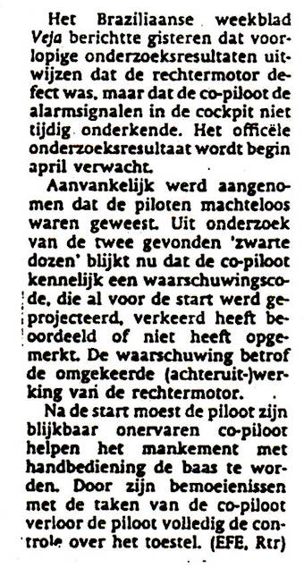 commentaar van Eric Munk is het een gevolg van het inklappen van het neuswiel bij stilstand.