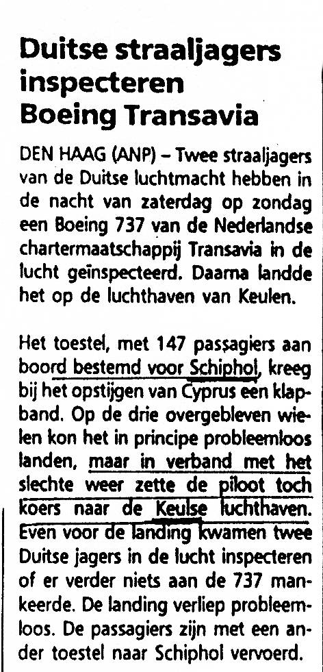 voorgeschreven hoogte. De toestellen passeerden elkaar met een hoogteverschil van 30 meter.
